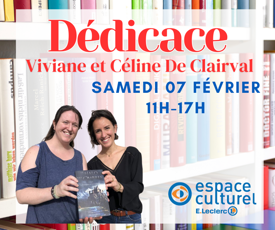 L’Espace Culturel E.Leclerc de Barbezieux accueillera un événement littéraire à destination des amateurs d’imaginaire le samedi 7 février, de 11h à 17h. Les autrices Viviane de Clairval et Céline de Clairval seront présentes pour une séance de dédicace consacrée à leur saga de fantasy Le Halo des Ombres, parue aux Éditions Pyrélion.